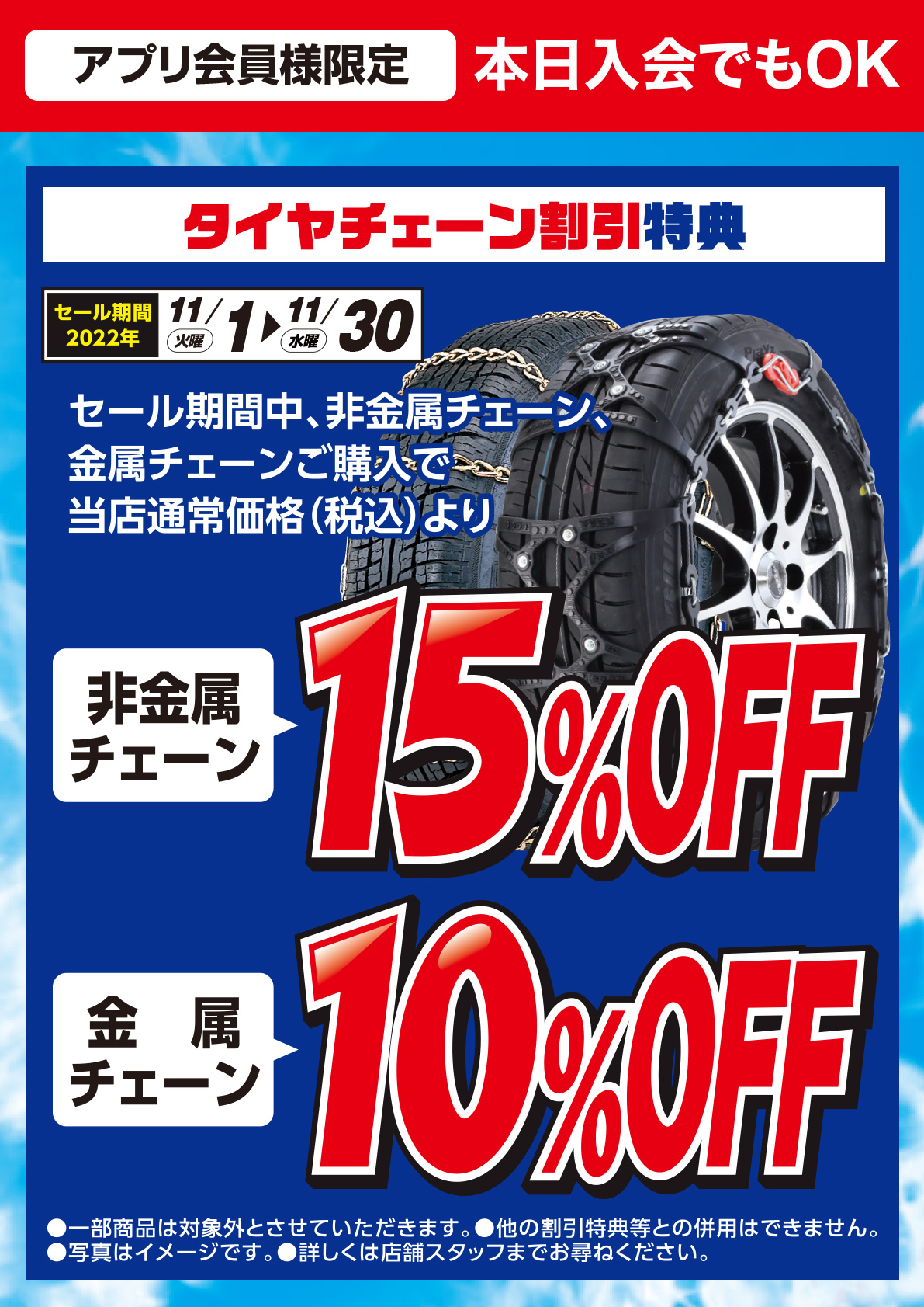 【タイヤチェーン早期割引特典】