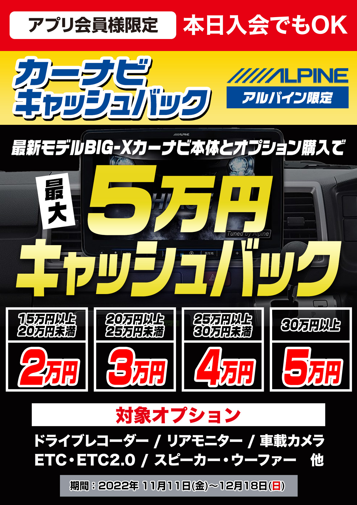 【アルパインBIG-Xも最大5万円のキャッシュバック】