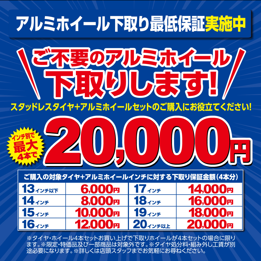 タイヤ&ホール l 《環4泉》 夏タイヤ20%OFF オールシーズンタイヤ20%OFF アルミホイール下取り保証 冬タイヤ20%OFF 冬タイヤ10月中に取付で最大工賃分還元 お問い合わせは店舗までご連絡ください