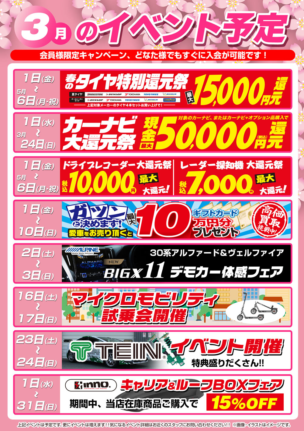 3月もお得なキャンペーン満載の当店を是非ご利用下さい!