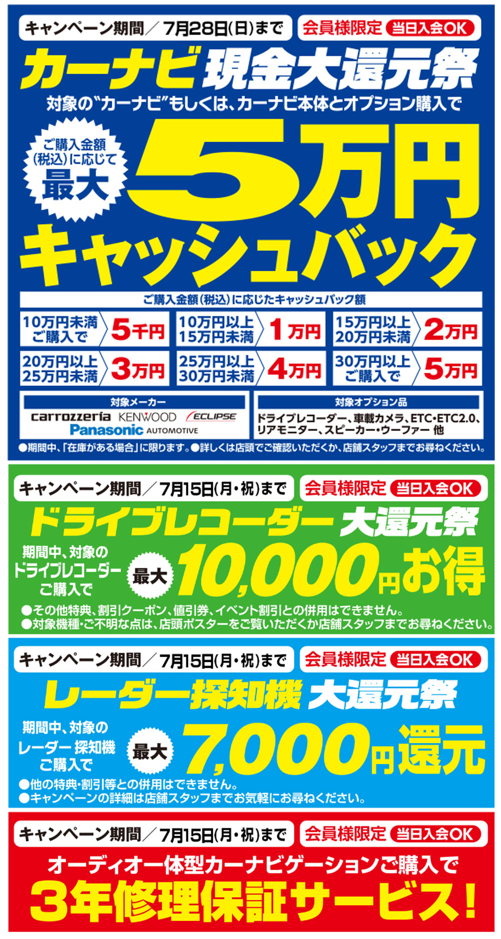 夏祭りセール期間限定のカーナビゲーションのお得情報をご案内致します。