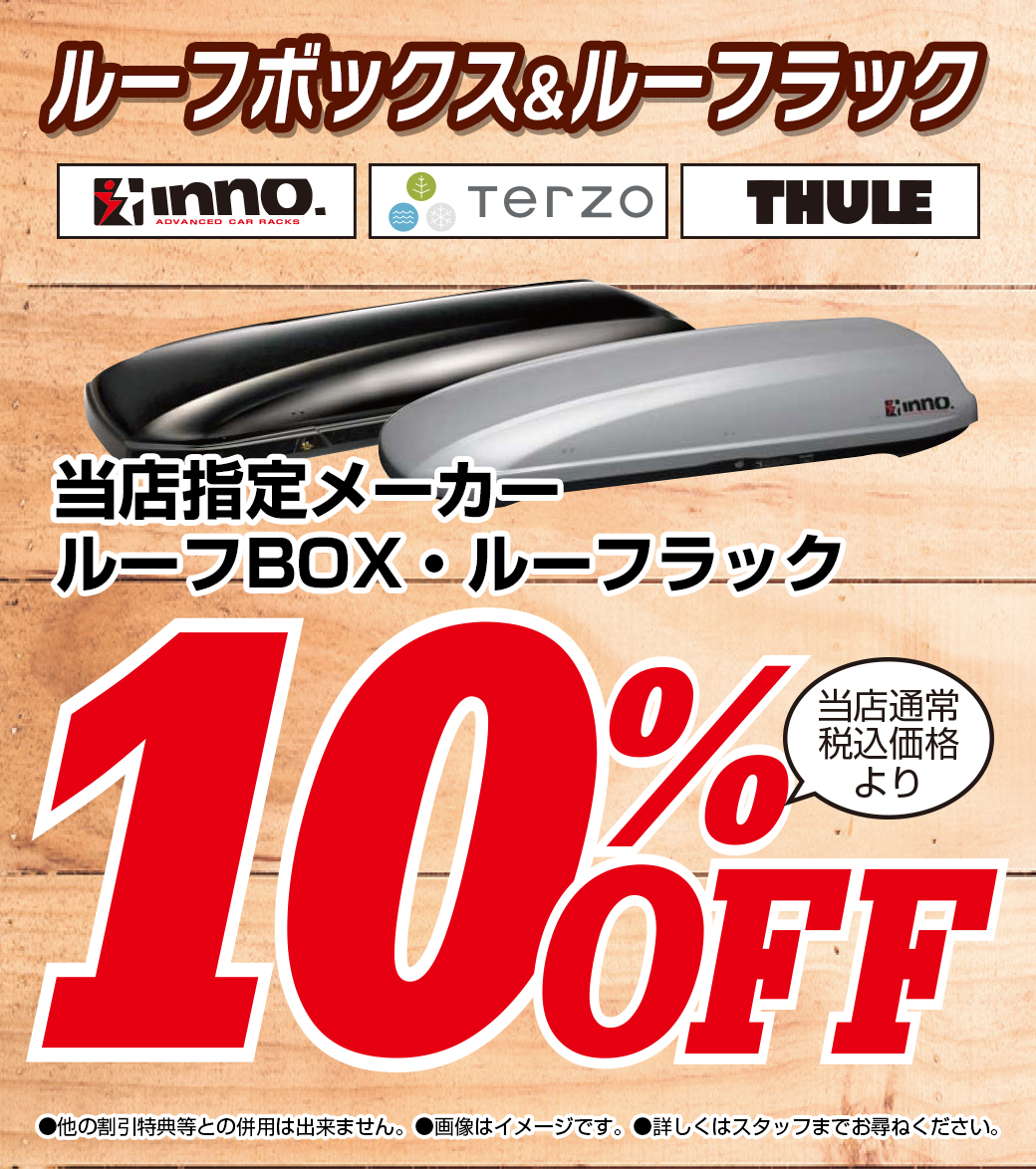 当店指定のルーフボックス&ルーフラックが10%OFF!