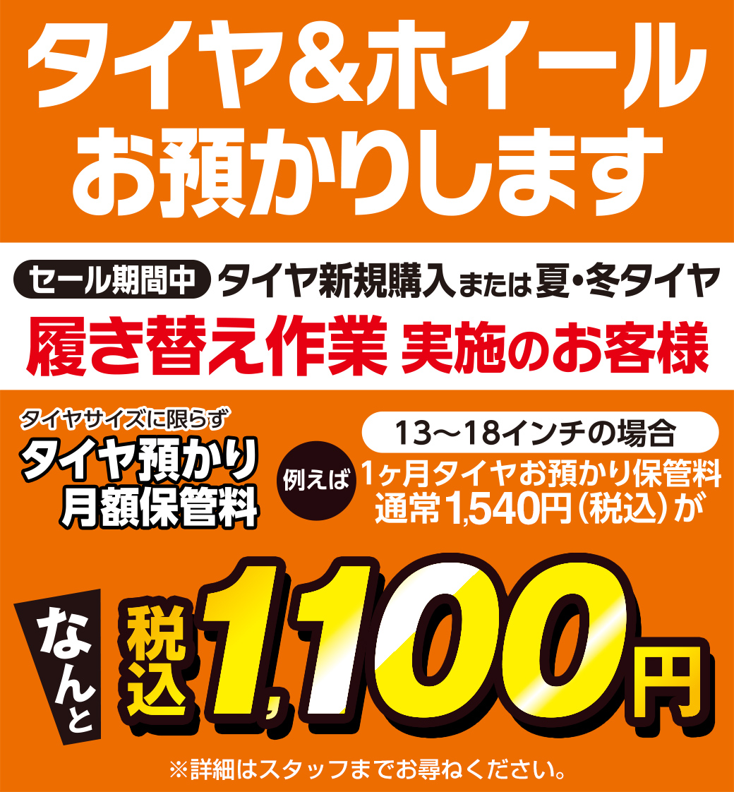 19周年セール期間中のタイヤ保管のご契約で月額1,100円にてお預かりと大変お得です!