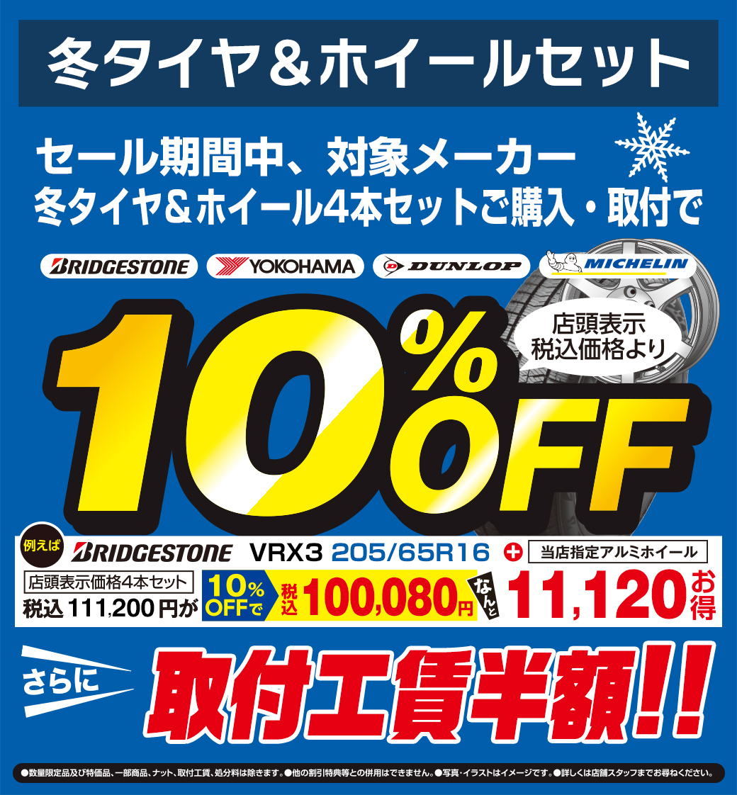 ホイールセットもお得なセット価格から更に10%OFF&工賃半額になっちゃいます!