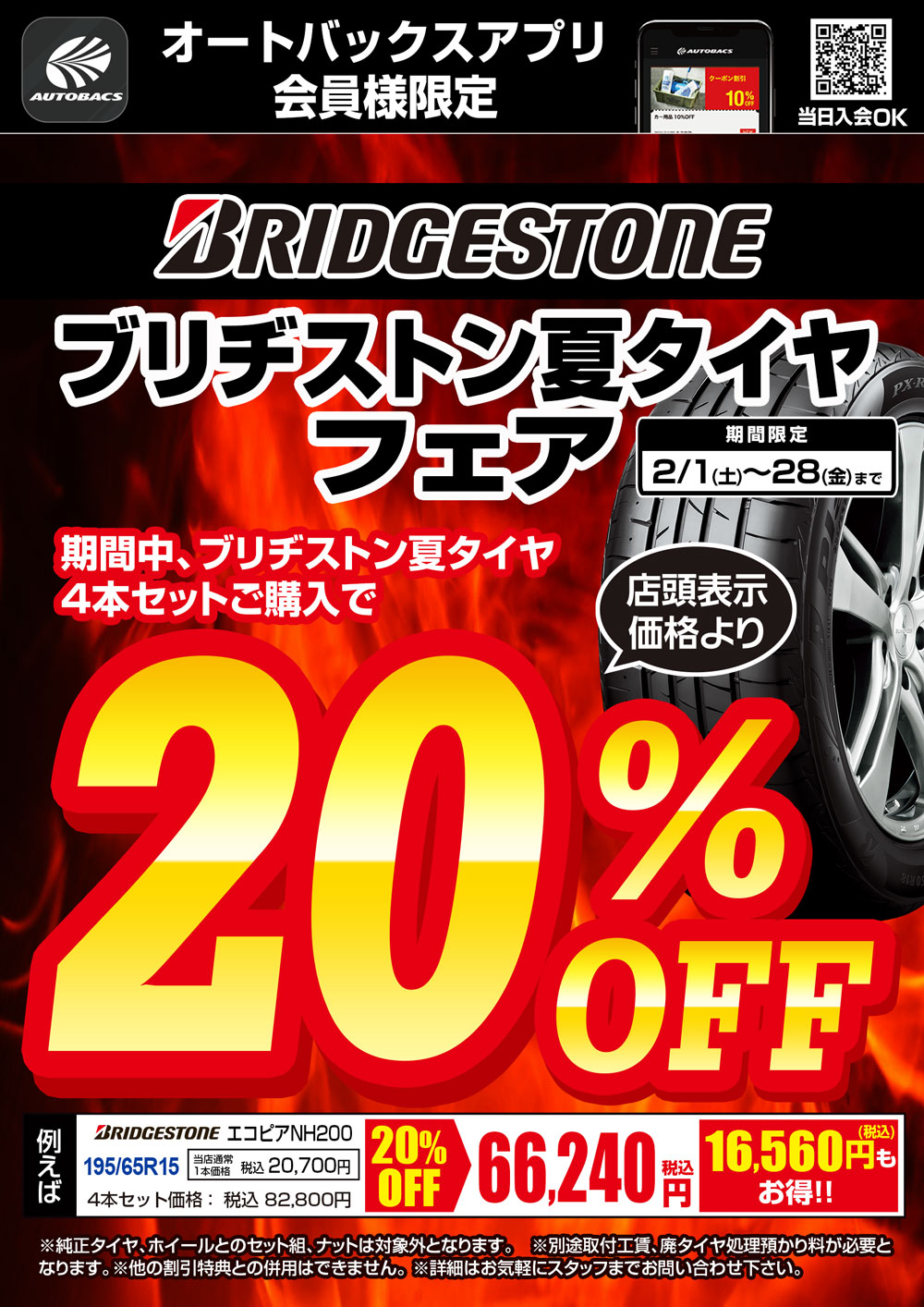 対象のブリヂストンタイヤ4本セットご購入で、20%OFF致します!!