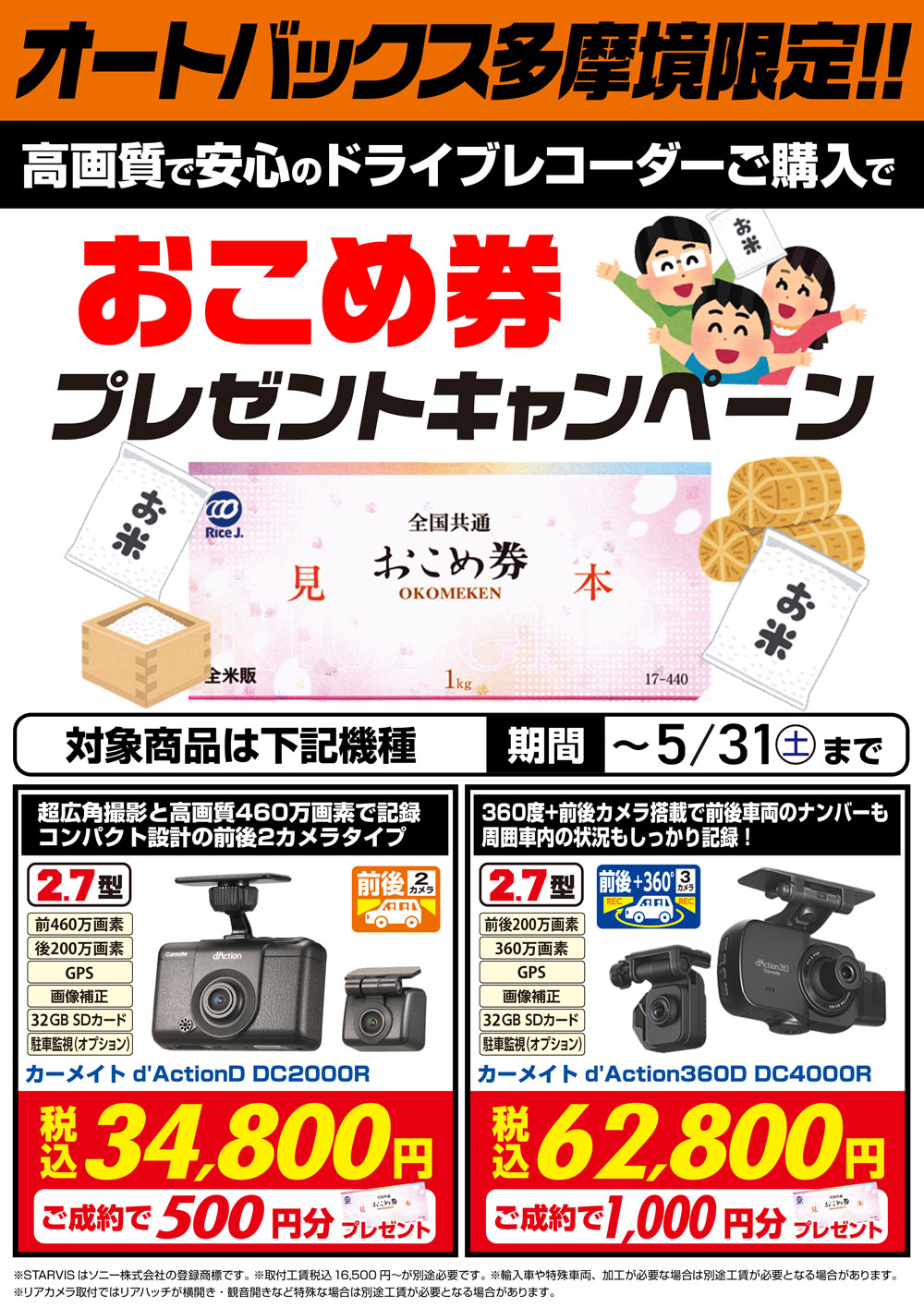ドライブレコーダーを購入してお米券を貰おう!! コンニチは!! 今回のイベントは!! カーメイト ドライブレコーダー購入でお米券をプレゼントしちゃいます!! 5月末までのイベントとなりますので ドライブレコーダーをご検討の方は是非一度ご来店下さいませ。 ※取付工賃別途必要となります。また一部車両にはお取り付け出来ない場合もございますので 店頭にてご確認の程宜しくお願い致します。