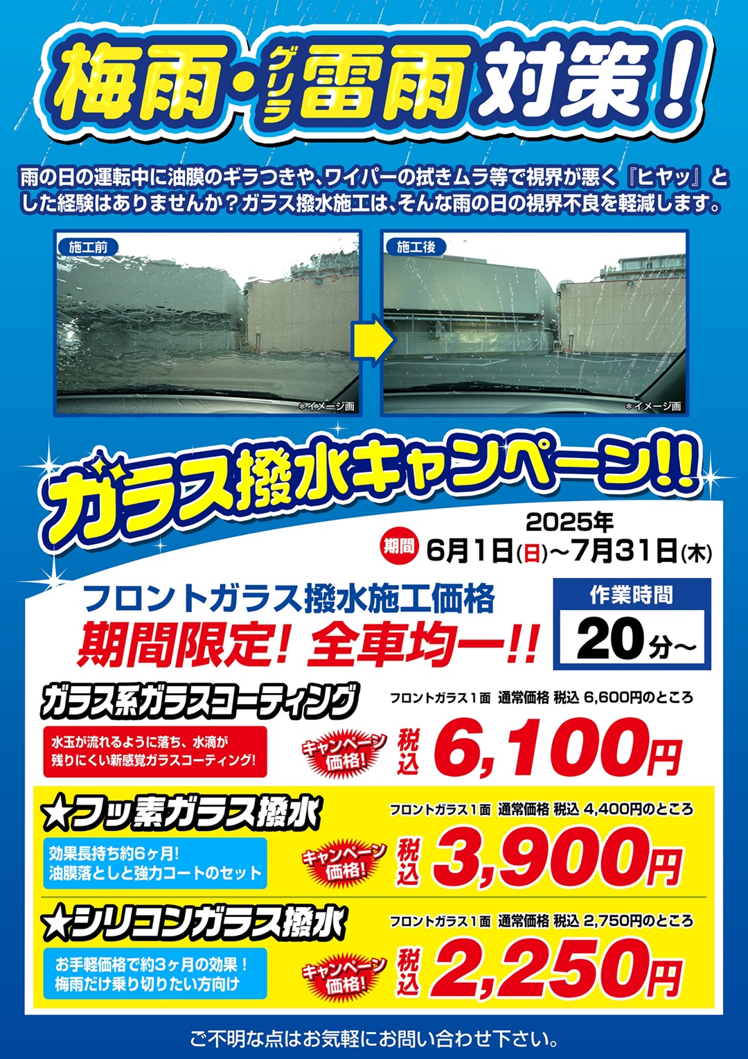 【雨の日の視界確保にガラス撥水キャンペーン】