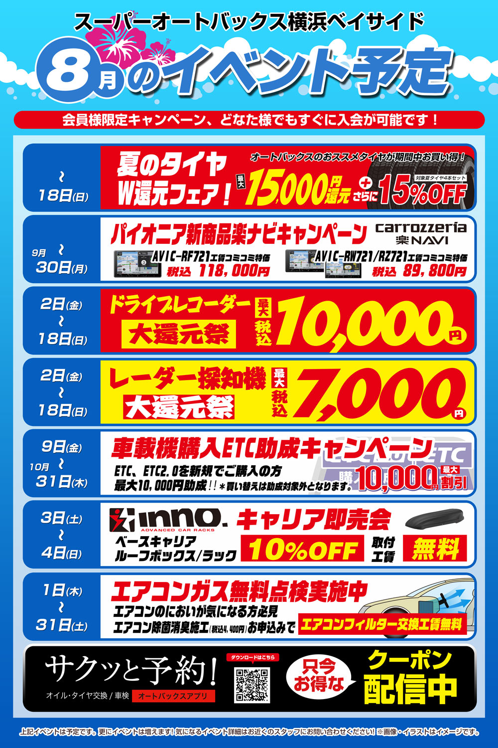 8月のイベント情報! 皆様こんにちは!!いよいよ夏本番になり厳しい暑さとなっております…お車のエアコンの効きが悪いと感じていましたら是非当店へご連絡下さい!!8月も暑さに負けないイベントをご用意してますので気になる方はお気軽にお問い合わせください!! また各イベントも予定しておりますのでお見逃しなく!!