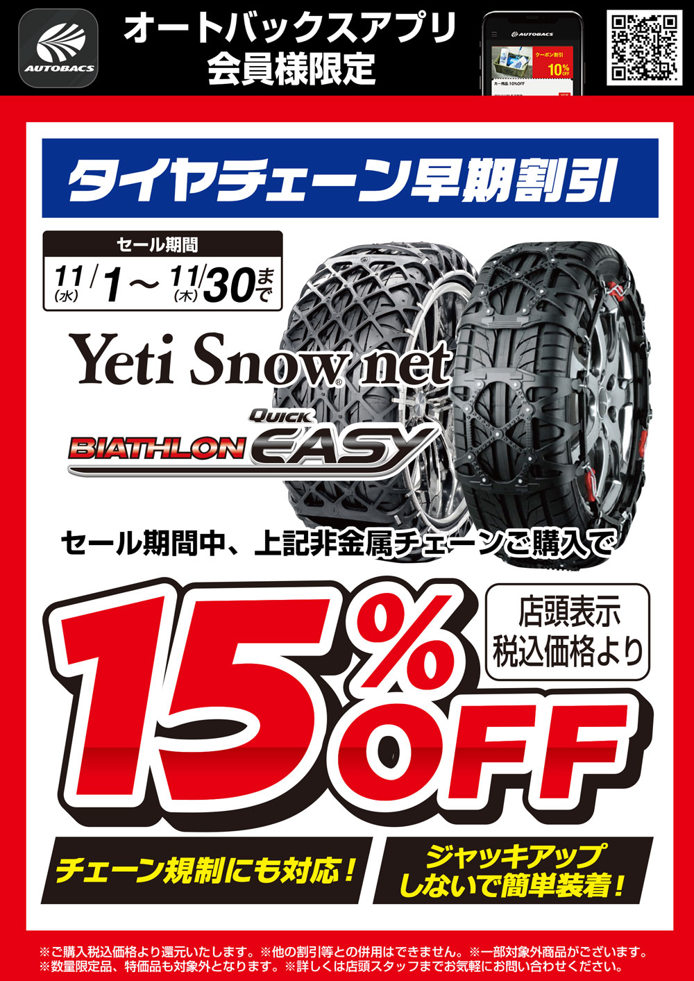 【タイヤチェーンは11月中がお得】