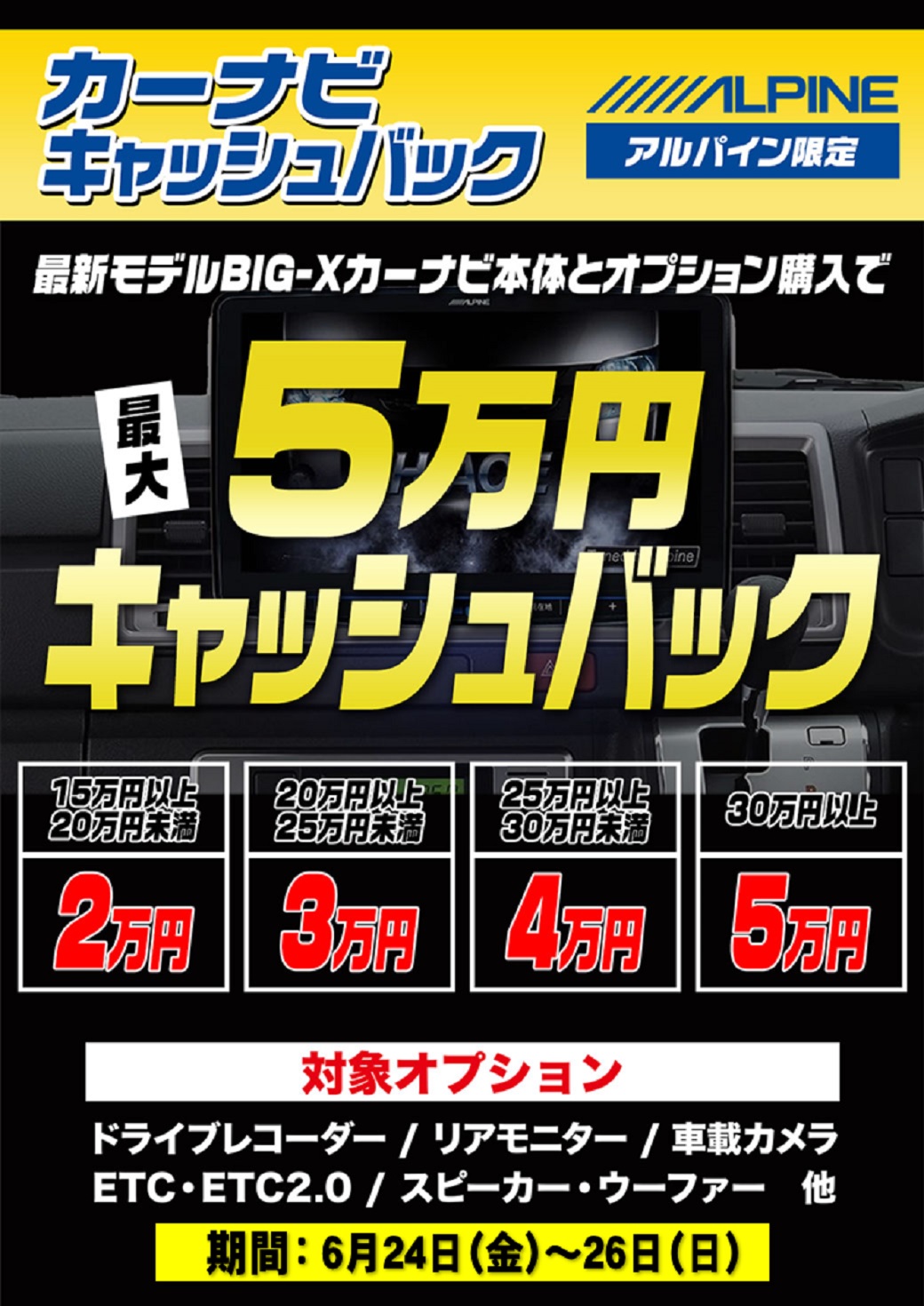 6月24日~26日の3日間、対象のカーナビゲーションと