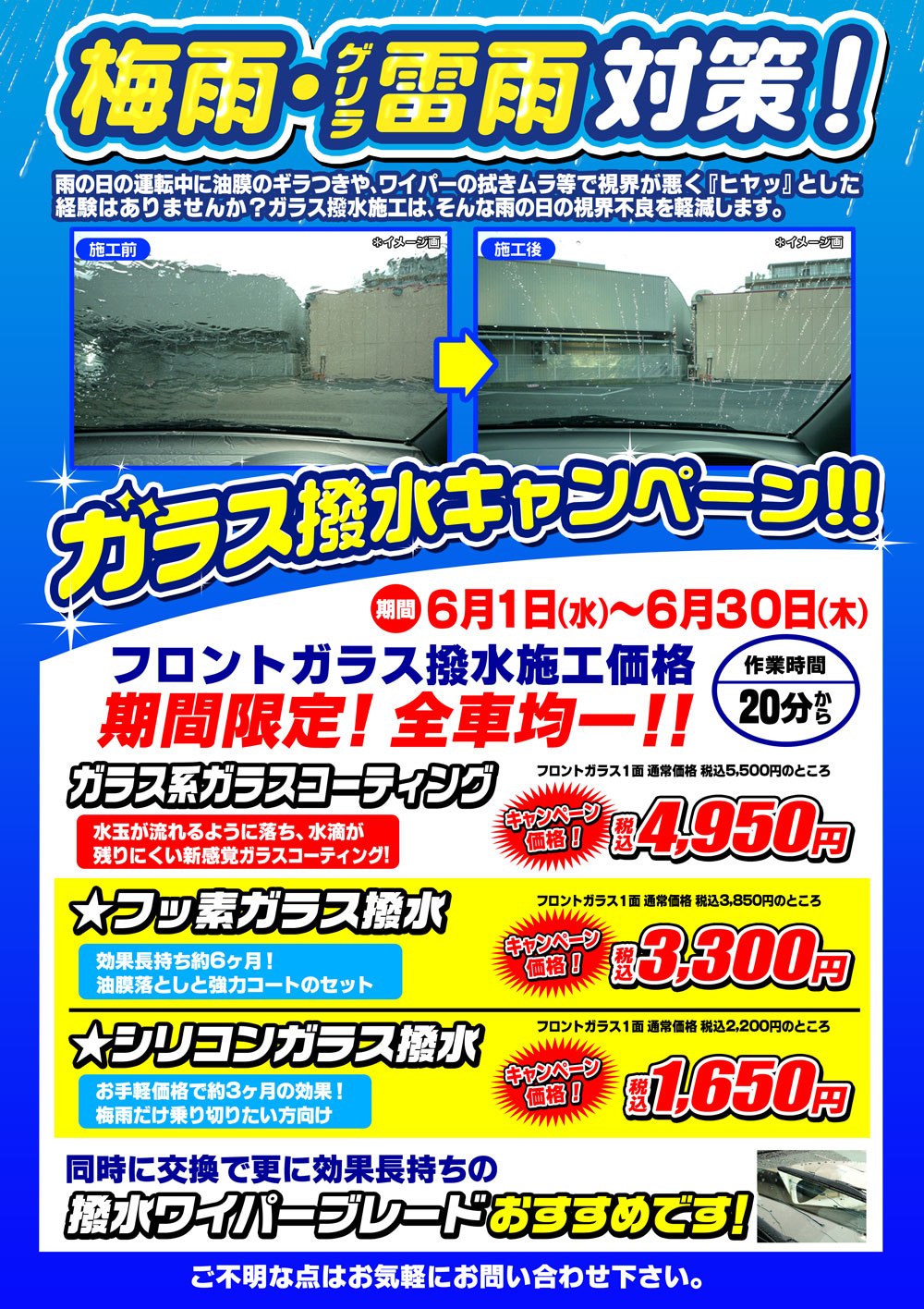 雨の日の安全運転対策に是非、ガラス撥水をお薦め致します。