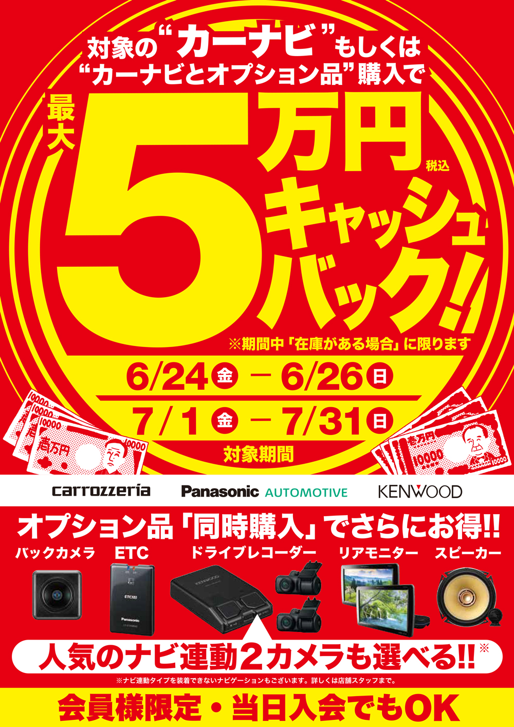 対象のオプションのご購入で最大5万円のキャッシュバック!