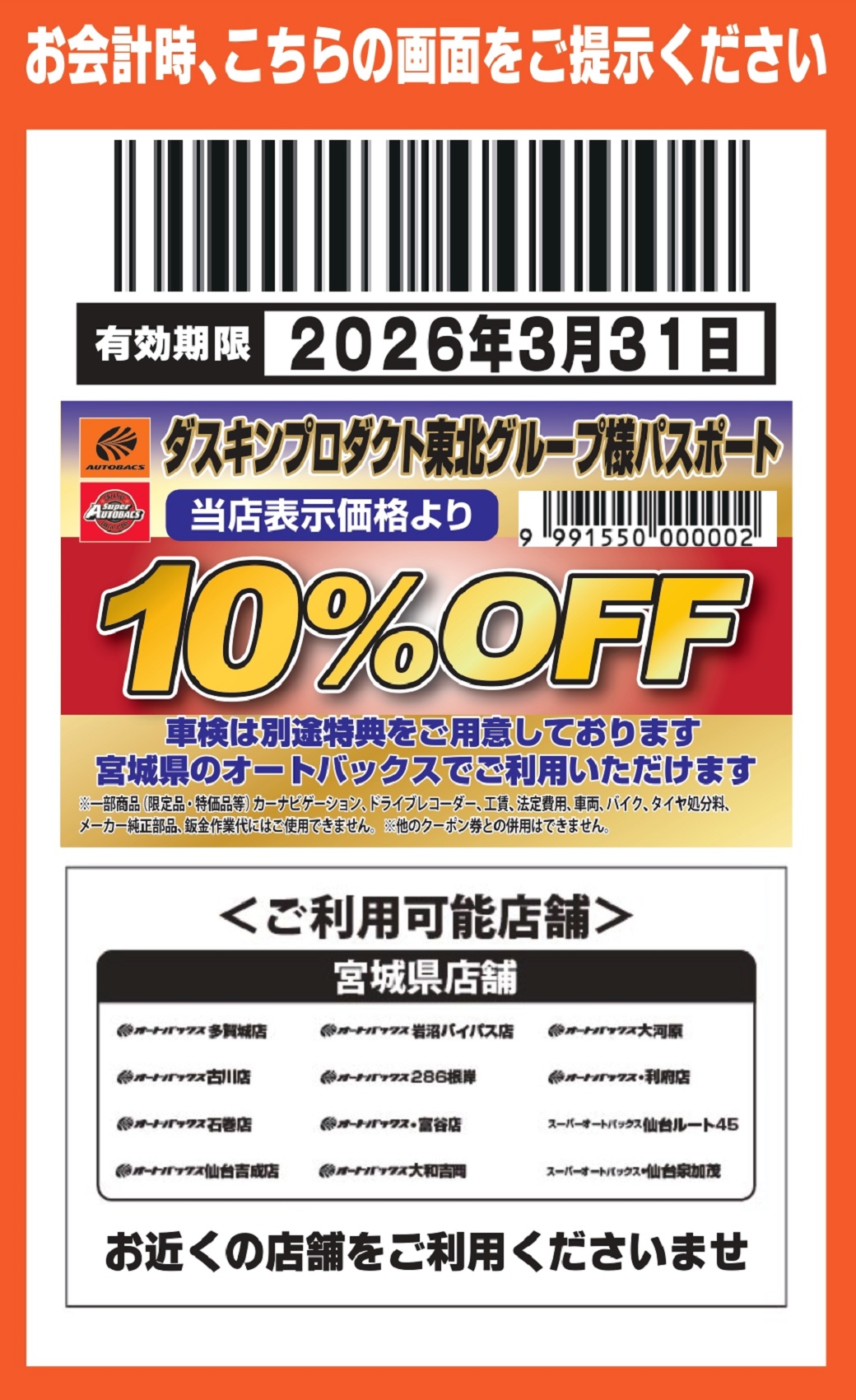 ダスキンプロダクト東北グループ様【割引パスポート】