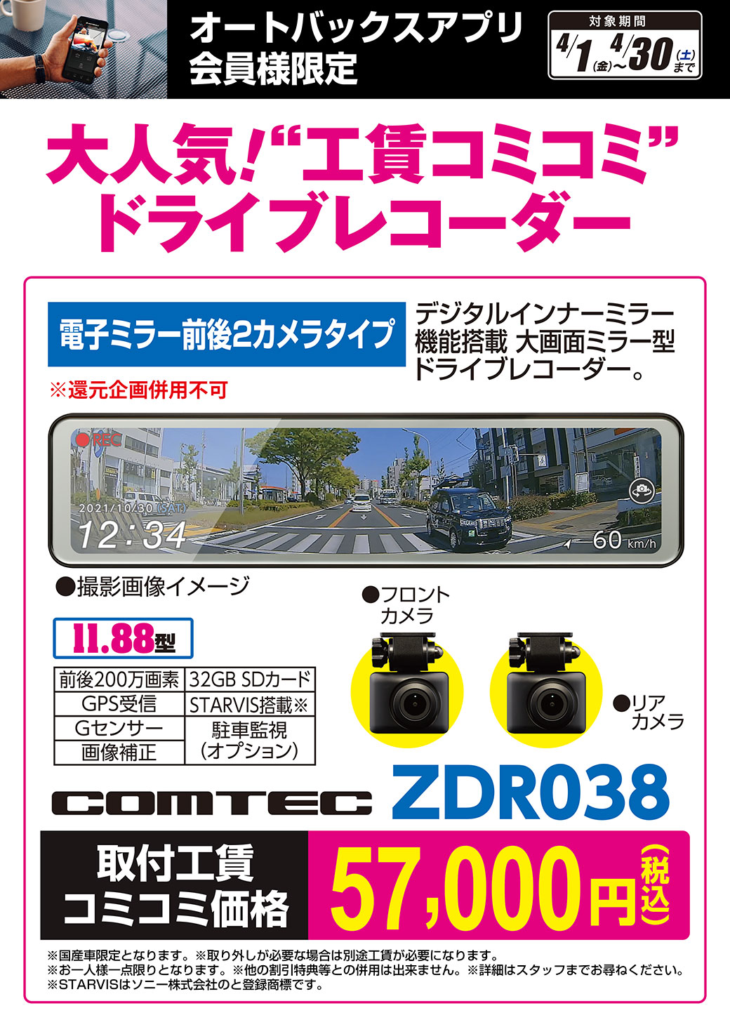 ドライブレコーダー人気NO.1「コムテックZDR035」が