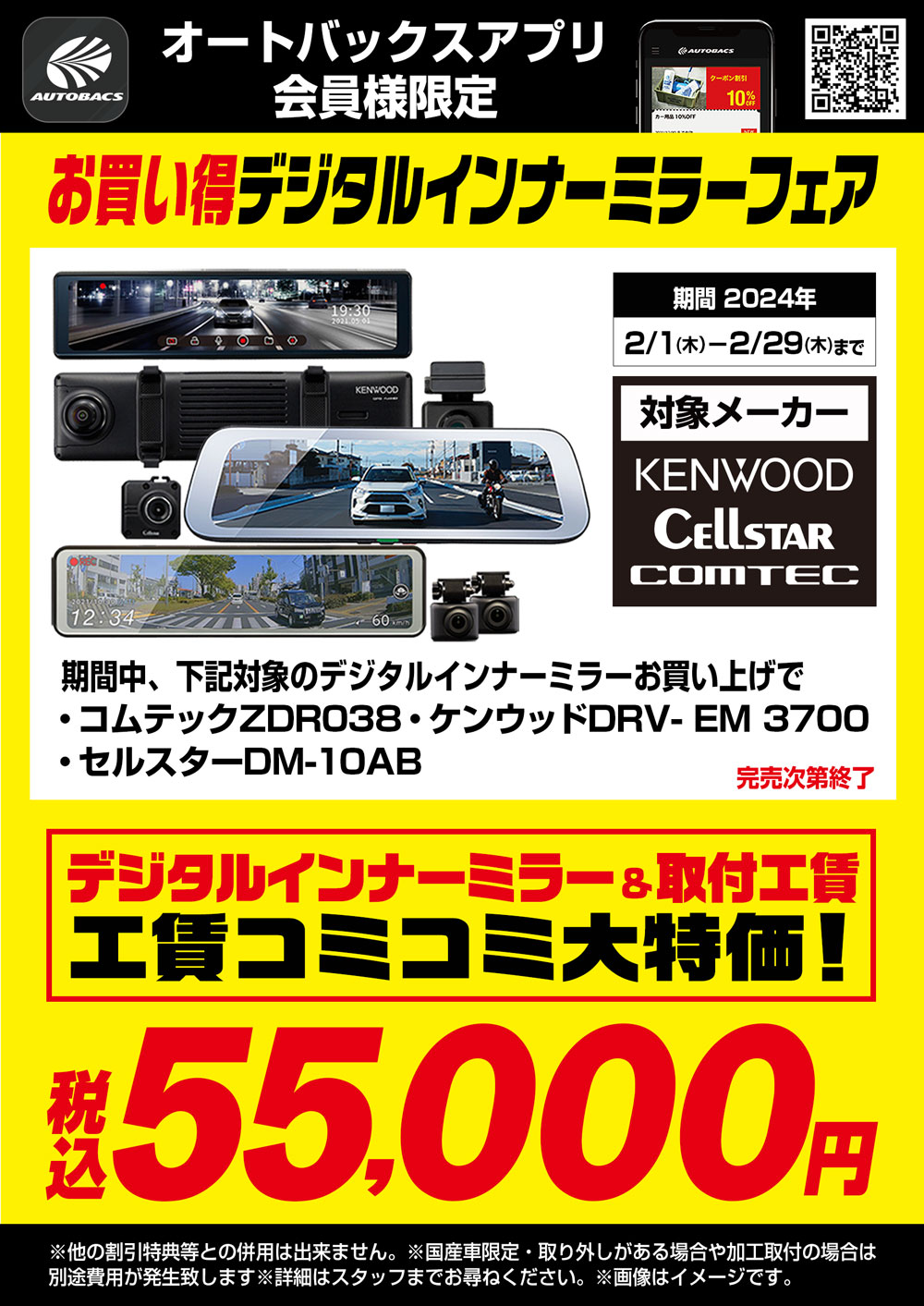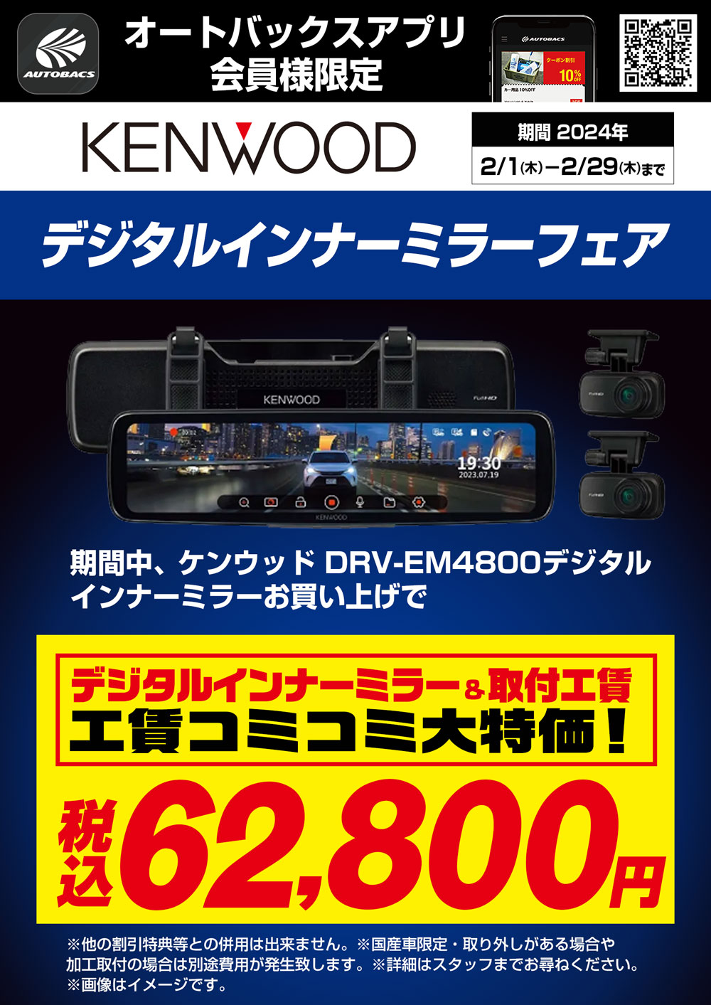 フロントカメラが別体になり、更に大人気のケンウッドのデジタルインナーミラーを工賃コミコミ特別価格にてご提供致します。