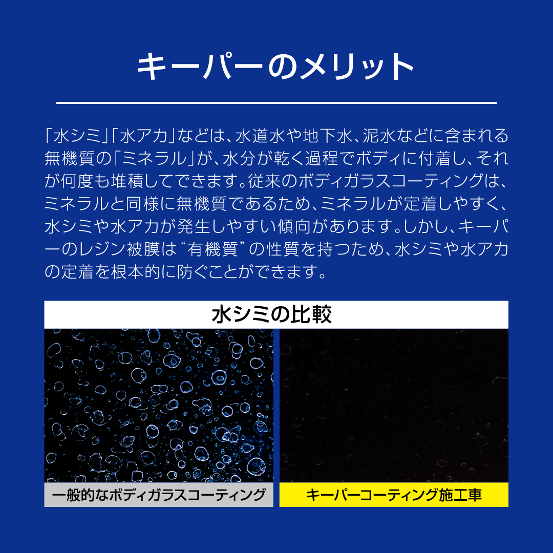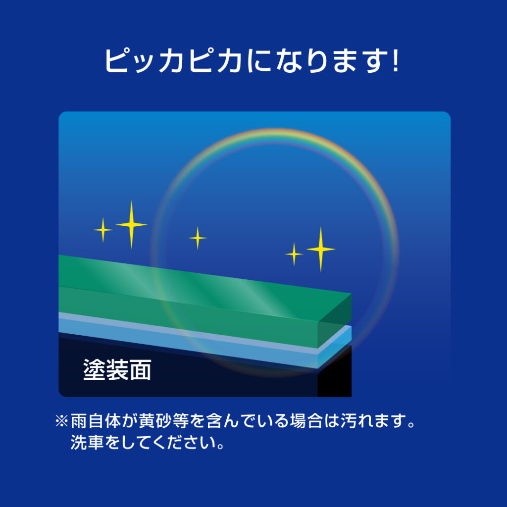 ヤモリも滑る、フレッシュキーパーは、独特の表面の分子構造で汚れの密着を防ぎ、ホコリが降り積もっても塗装表面には密着せず、自然の雨が降れば元々持っている撥水力で、雨と一緒に汚れが流れ落ち、まるで洗車をしたかのようにキレイになります。