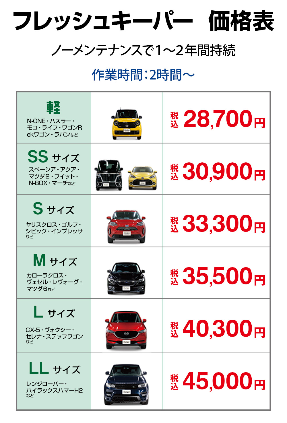 施工にご興味のある方、予約の空きを確認したい方は、店舗までご連絡下さい。
