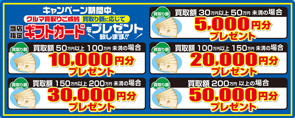 ・買取金額税込200万円以上~でギフトカード50,000円分プレゼント