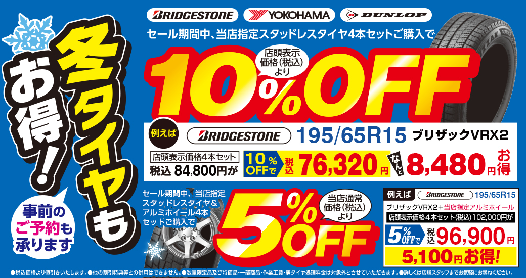タイヤのみ10%OFF! タイヤ+当店指定アルミなら5%OFF!
