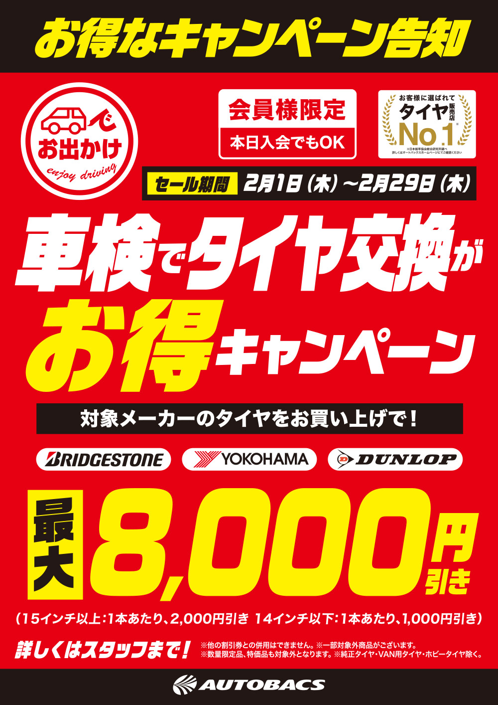 オートバックス会員限定、車検でタイヤ交換がお得キャンペーン