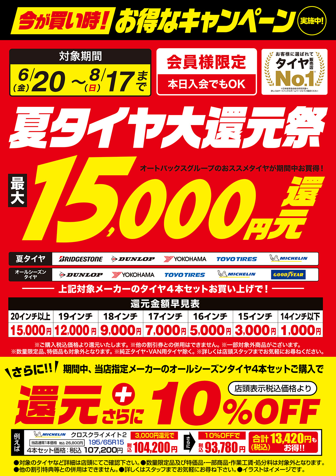 オートバックス会員限定、夏のタイヤ大還元祭を