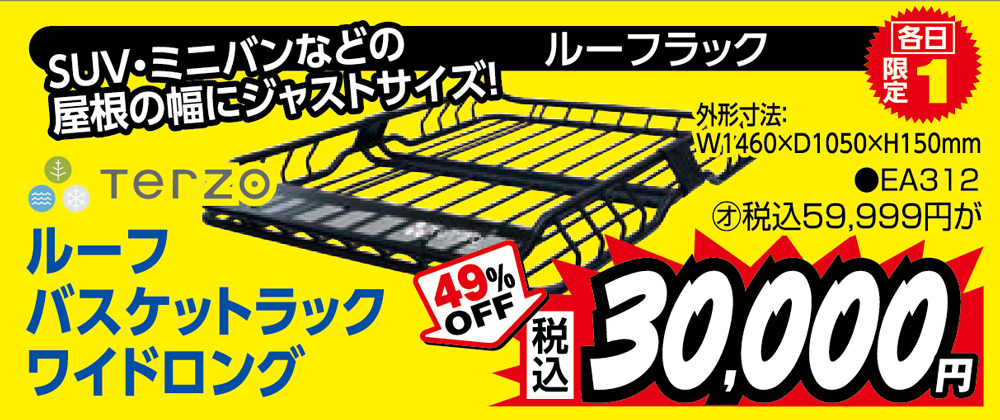 ルーフボックスから洗車グッズまで、各カテゴリーの人気のカー用品を数量限定の特別価格にてご提供致します。