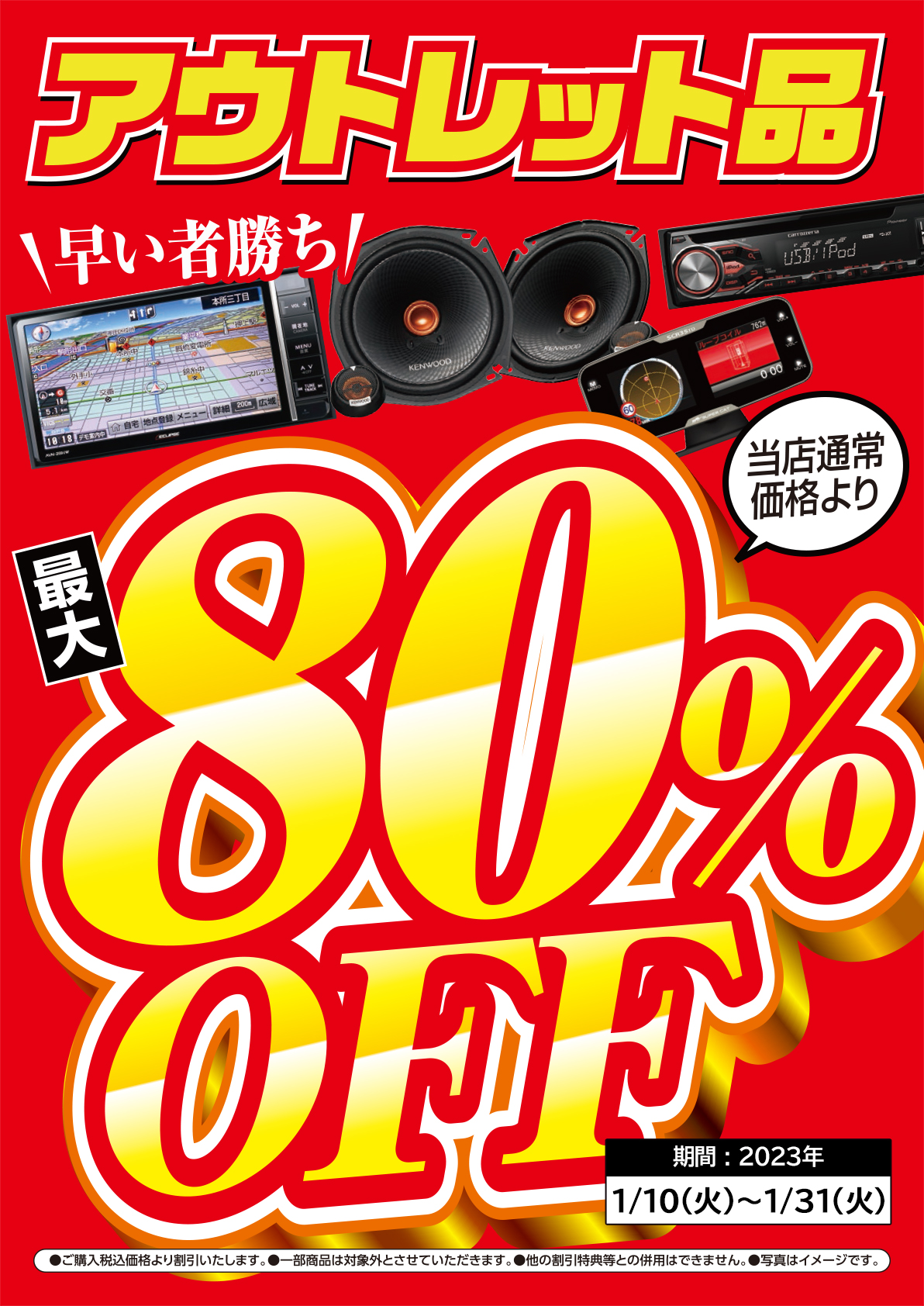 【最大80%OFFのアウトレットセール開催】